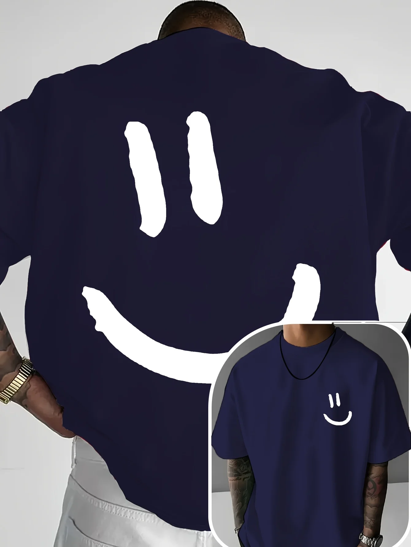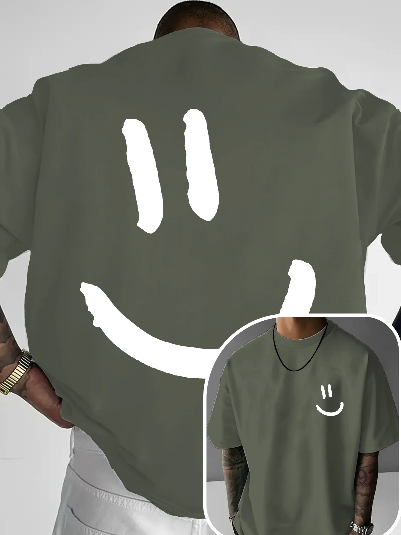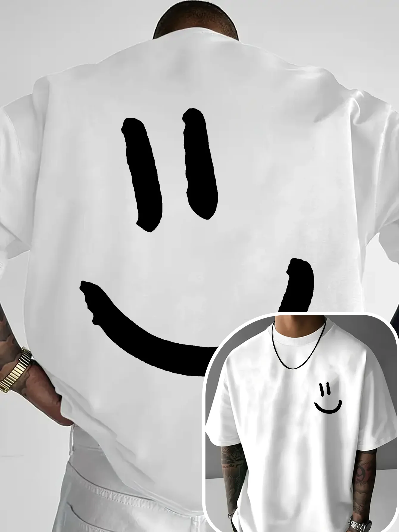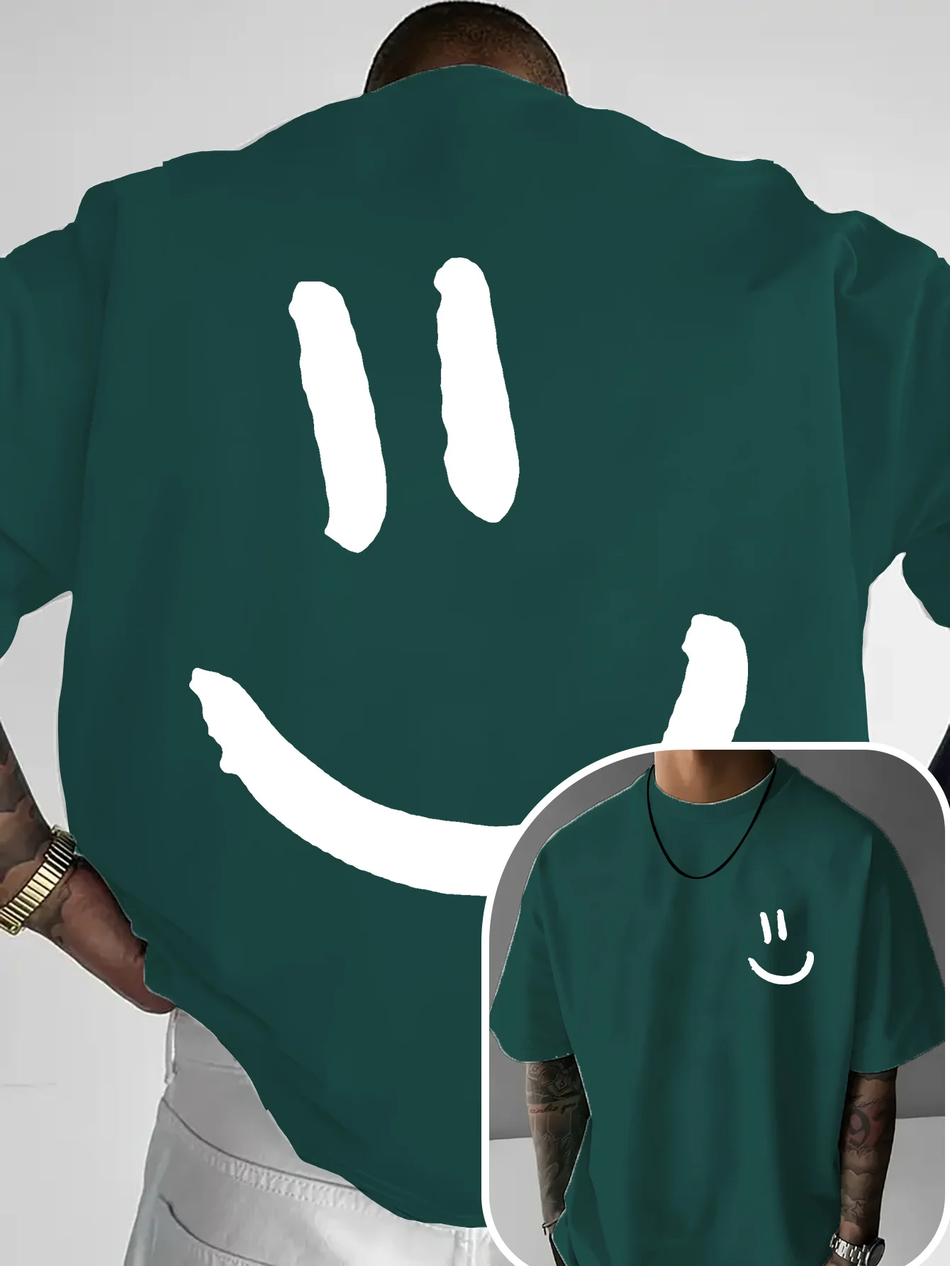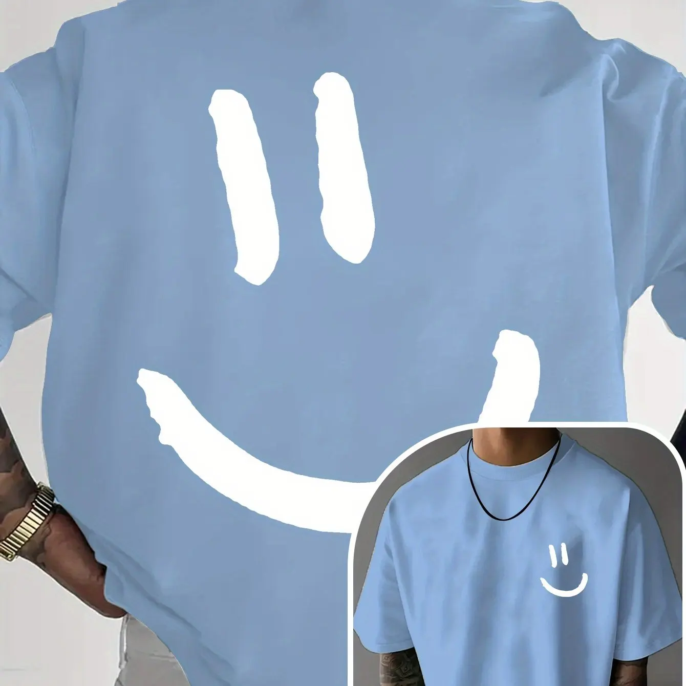 100% algodão masculino moda casual esportes solto rosto sorridente padrão impresso em torno do pescoço manga curta camiseta topo