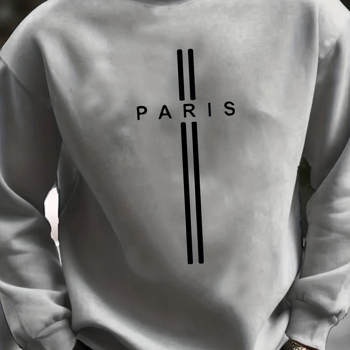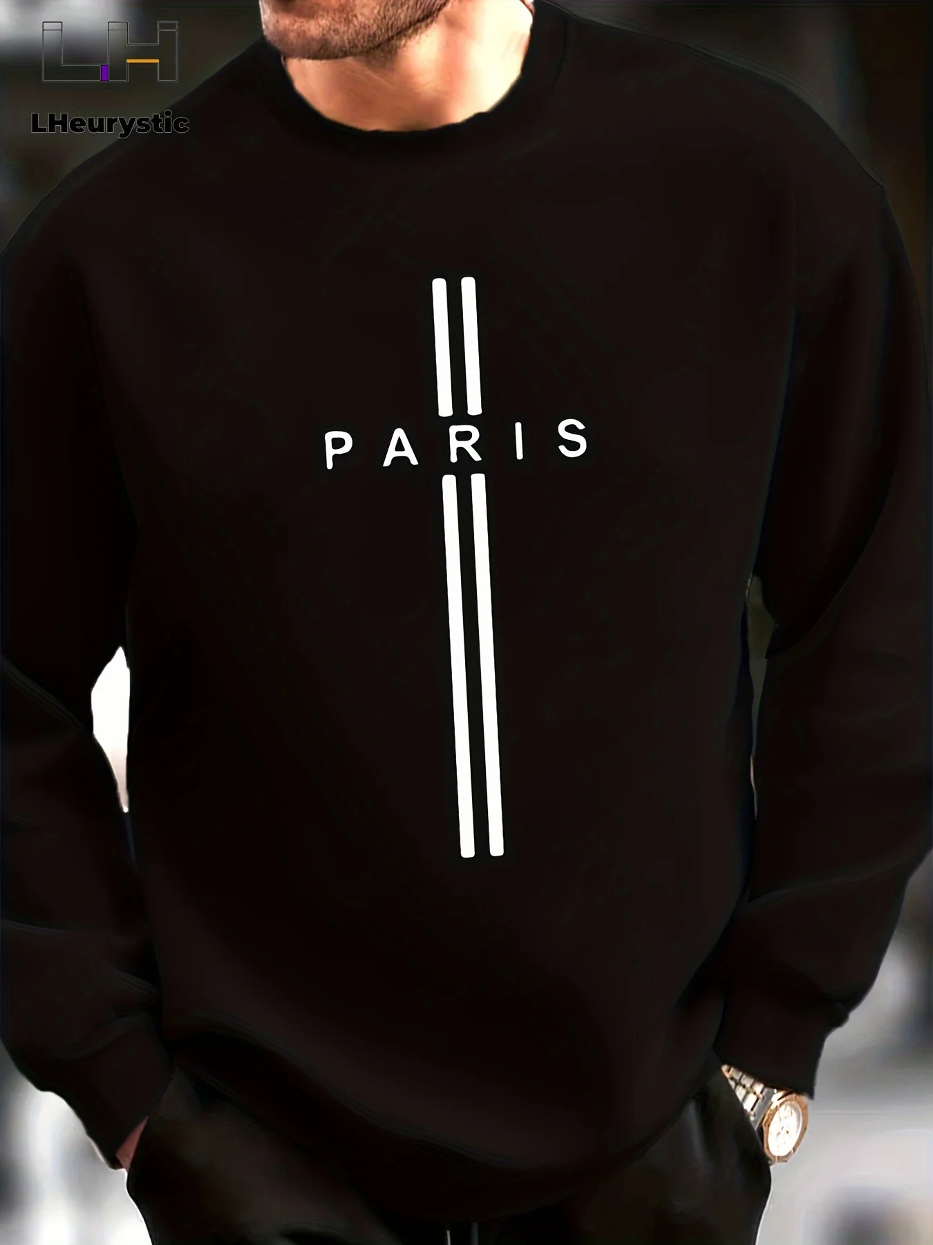 Outono e inverno masculino casual esportes solto oversized paris impressão com lã quente pulôver em torno do pescoço manga comprida moletom