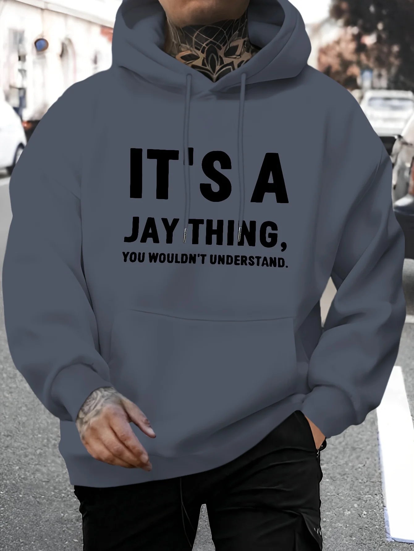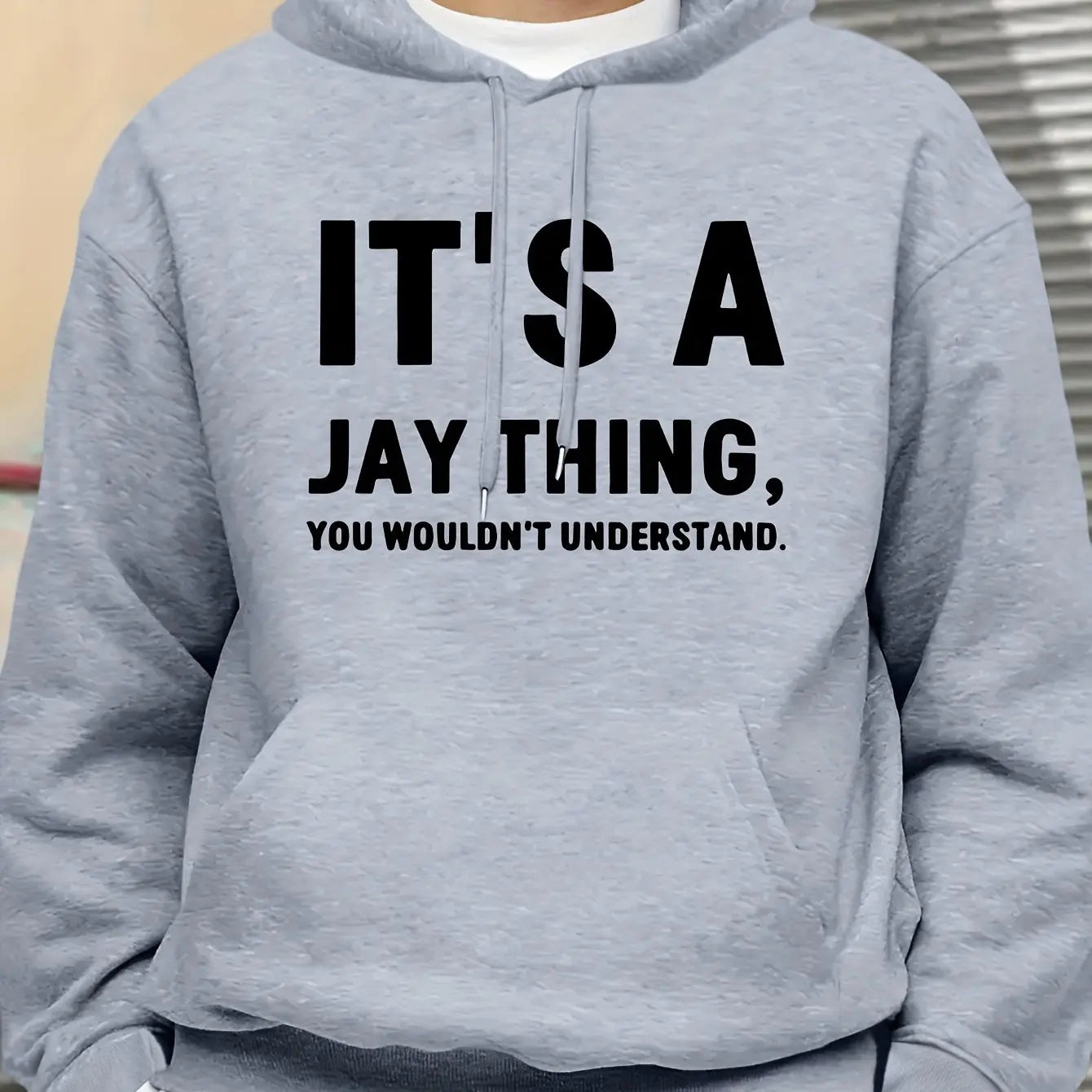 Outono e inverno masculino casual moda solta hoodie é uma coisa de jay impressão carta impressa manga comprida com capuz pulôver quente