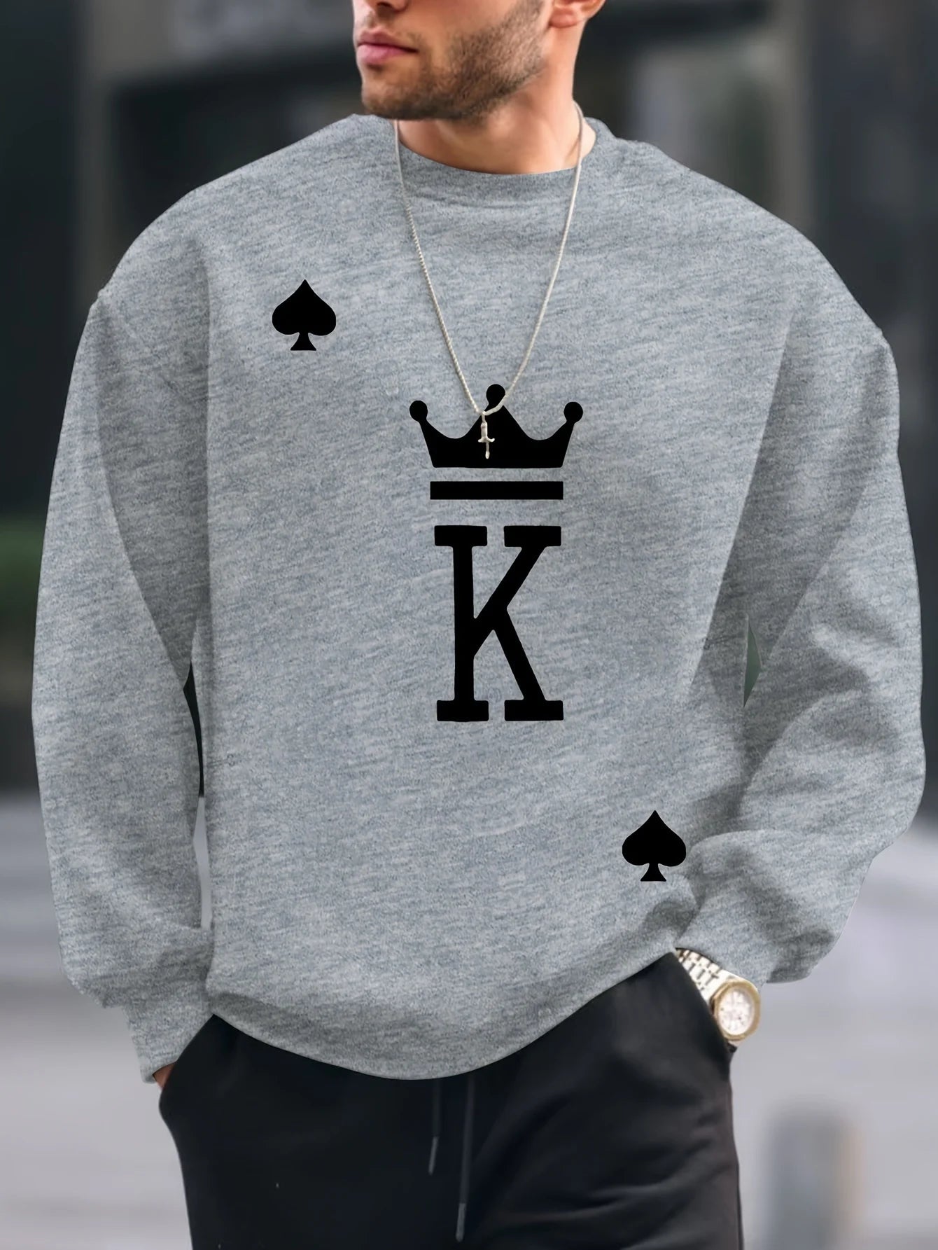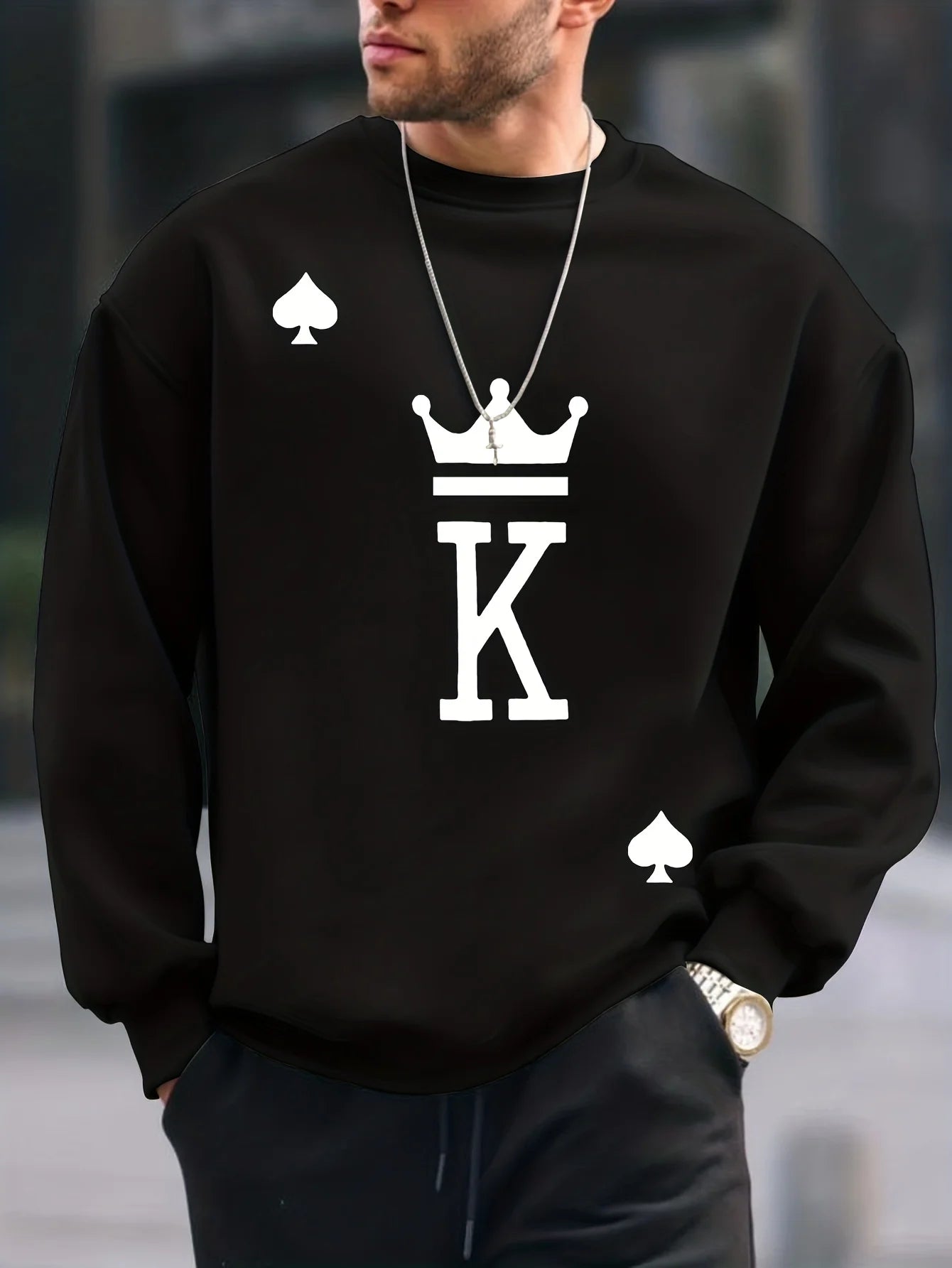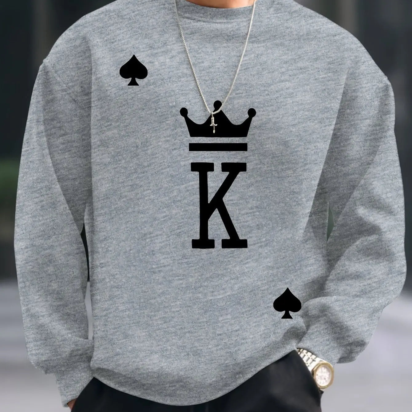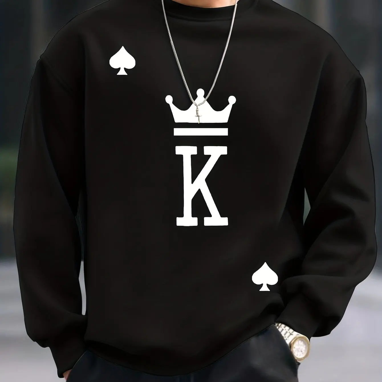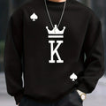 Outono e inverno masculino moda casual solto oversized king impresso pulôver de lã em torno do pescoço moletom de manga comprida