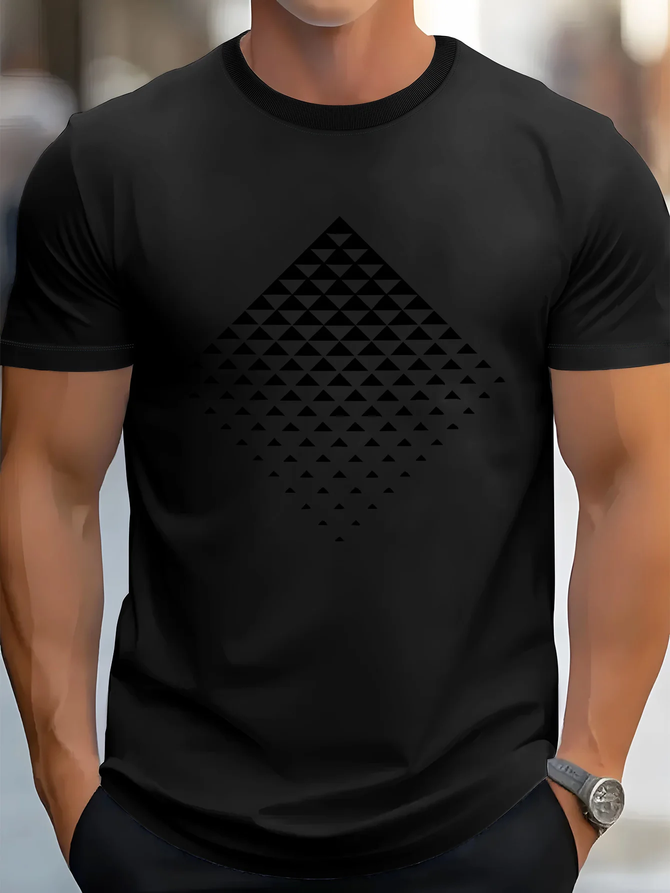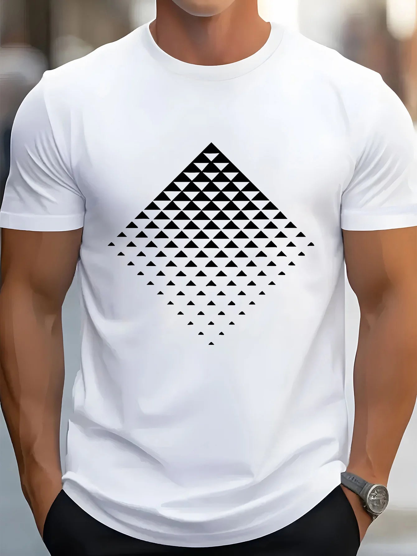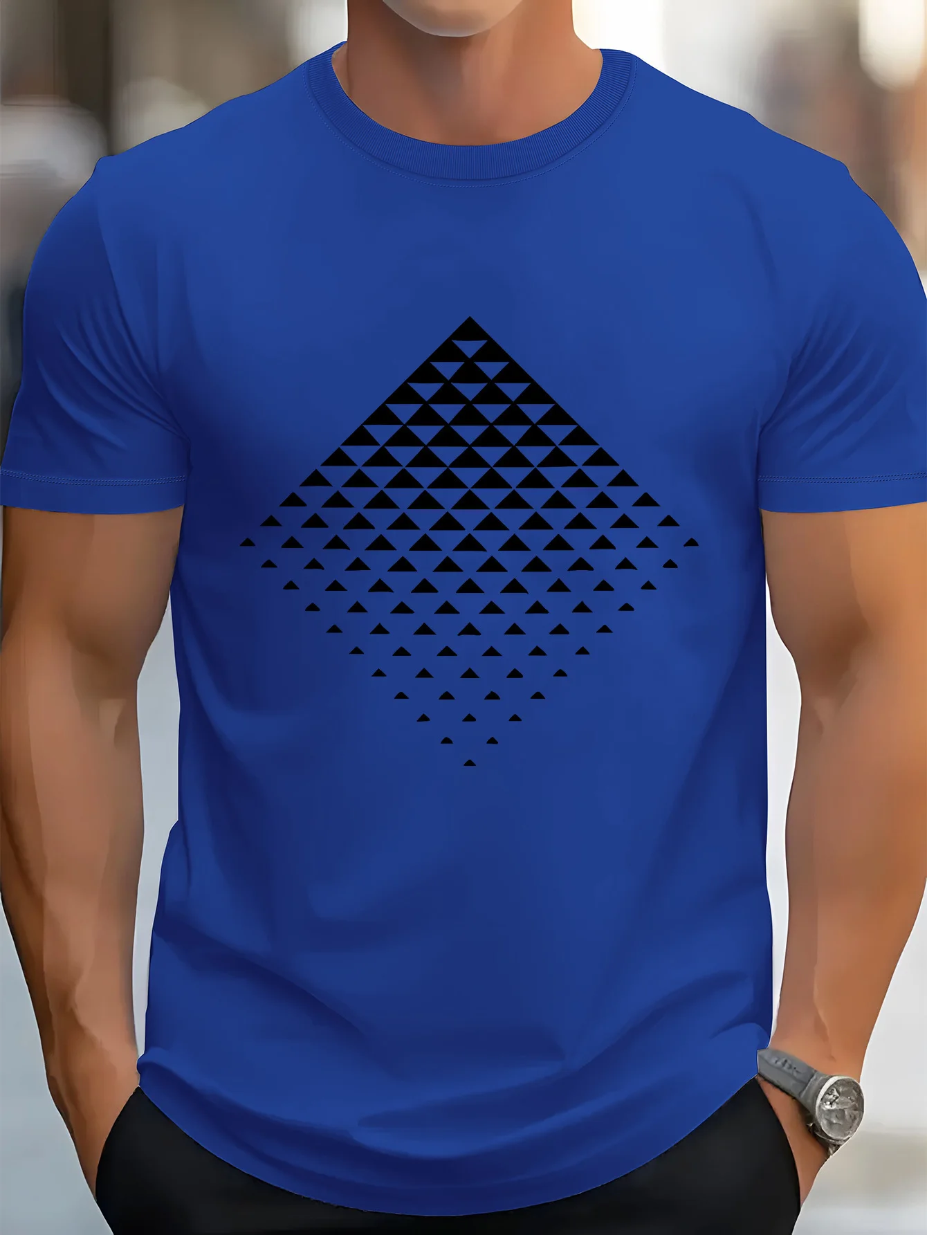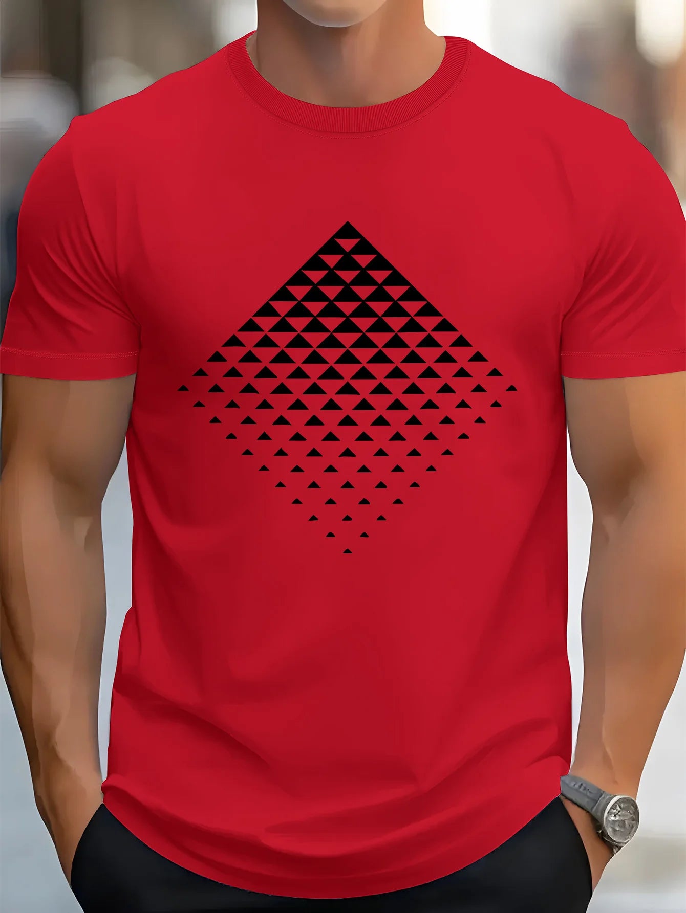 Verão masculino 100% algodão puro moda casual solto criativo bloco de mosaico impressão esportes em torno do pescoço manga curta camiseta topo