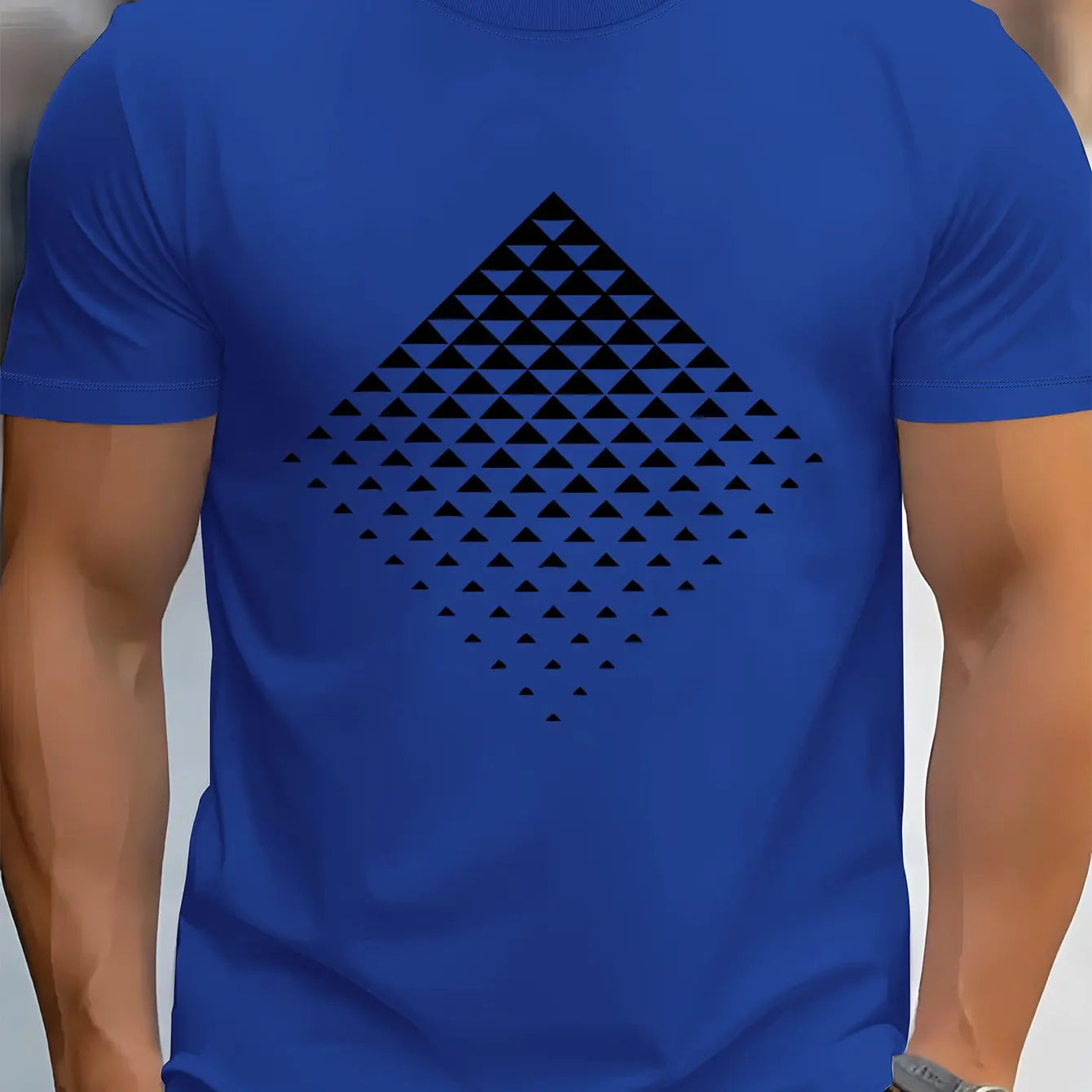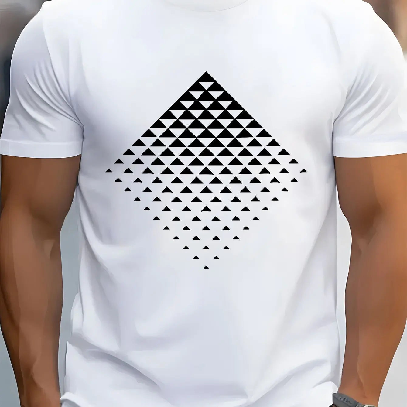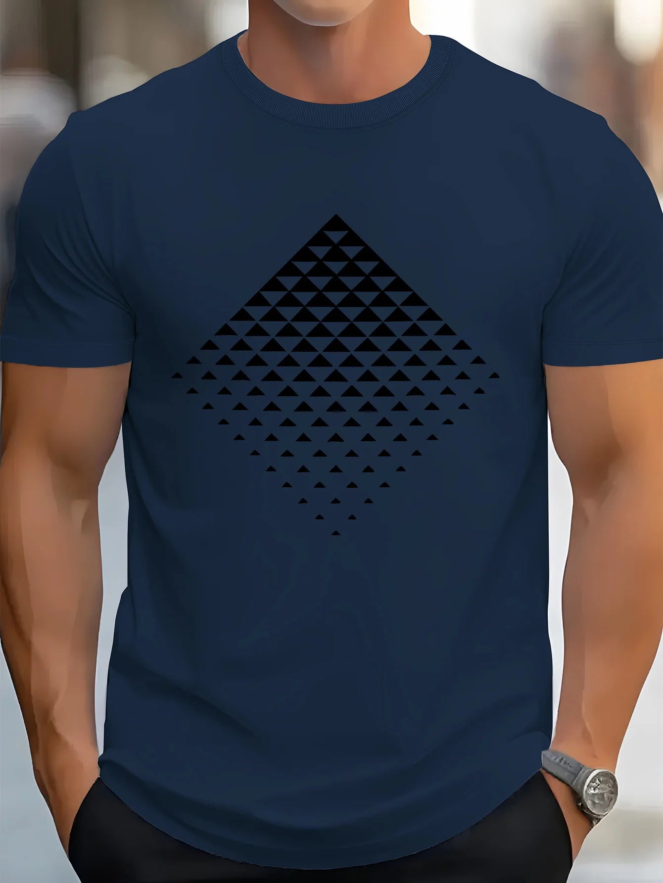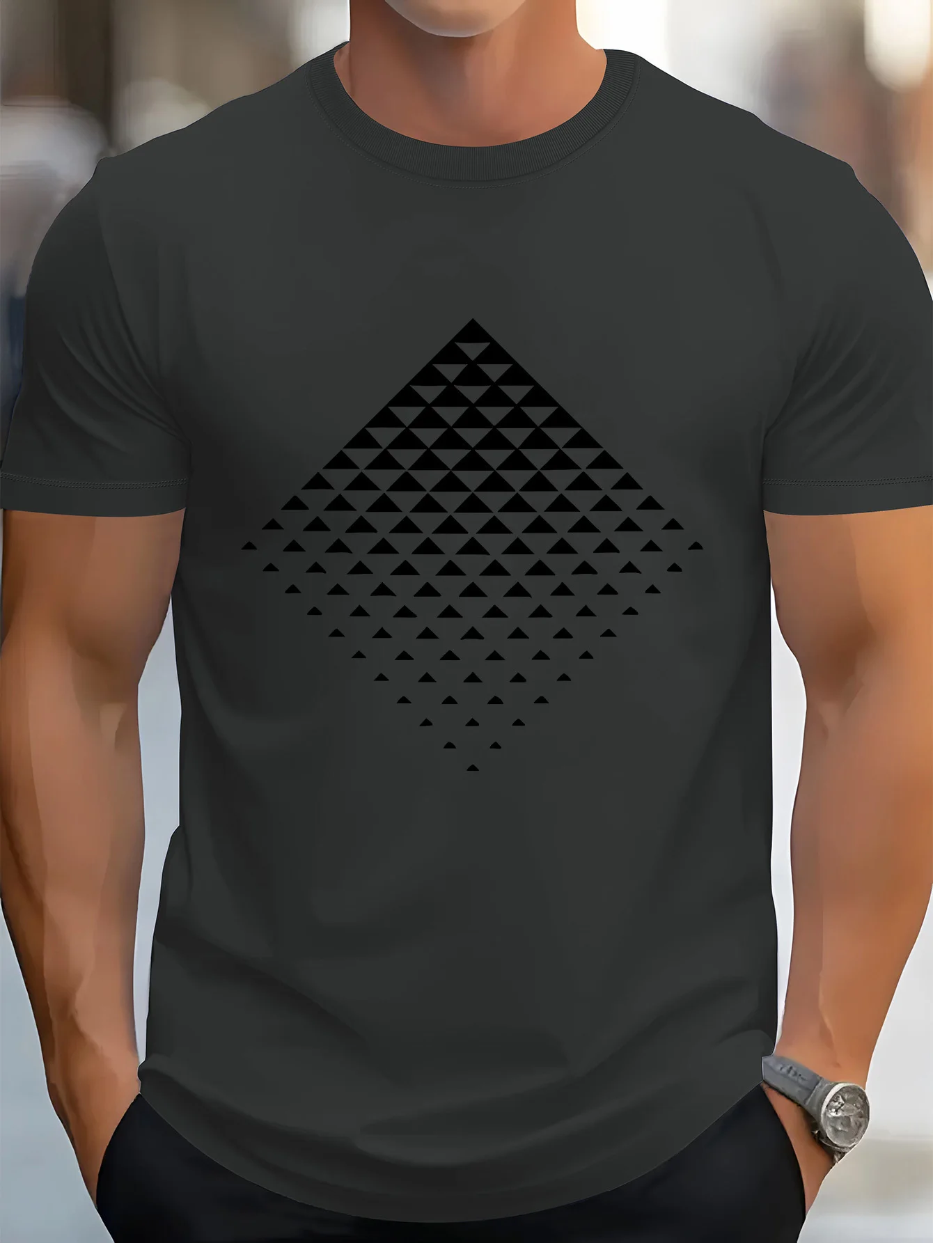 Verão masculino 100% algodão puro moda casual solto criativo bloco de mosaico impressão esportes em torno do pescoço manga curta camiseta topo